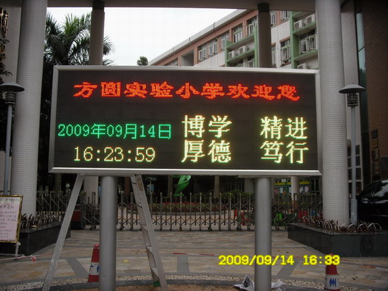【产品型号】:P10室外双色LED显示屏【产品间距】:10mm【产品用于】:室外使用【产品特点】:像素密度高,亮度高,防水防晒,可视距离远、信息发布方便、价格低廉等特点,尤其适合发布图文信息。广泛应用在车站、机场、商场、银行、工商、税务、工厂、医院、高速公路等文字、图片发布场合P10室外双色LED显示屏,可显示红、绿、黄三种颜色,具有像素密度高、亮度高、防水防晒、可视距离远、信息发布方便等特点,尤其适合发布图文信息。广泛应用在车站、机场、商场、银行、工商、税务、工厂、医院、高速公路等文字、图片发布场合。序号项目P10室外双色LED显示屏技术指标1像素点形状圆形2像素点中心距10mm3像素晶片构成1红+1绿4单元板解析度(W*H)64点*64点5每平方米像素数量10000点6箱体尺寸(W*H)640mm*640mm7屏幕亮度(平均值)≥6500cd/m28视角水平120°,垂直上10°下30°9使用功耗80W/㎡~600W/㎡11屏幕重量(不含支撑结构)<50kg/m212供电要求220V±15%50Hz13灰度级红、绿、黄14显示模式VGA640X480—VGA1600X102415屏幕寿命大于100,000小时16画面刷新频率≥360HZ17通信距离≤1200M(双绞线无中继)18相对温度—25℃~+60℃19相对湿度10%—95%RH20控制软件专用显示屏控制软件21最佳可视距离正面6--200m以内22通信接口VGA或者RS23223控制方式计算机同步或者异步控制